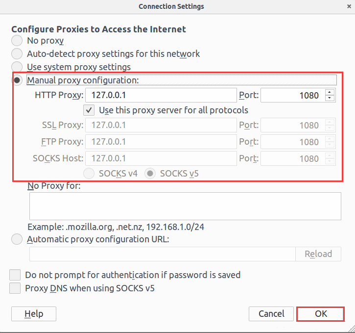 配置浏览器代理模式(本次为Ubuntu自带FireFox浏览器为例)